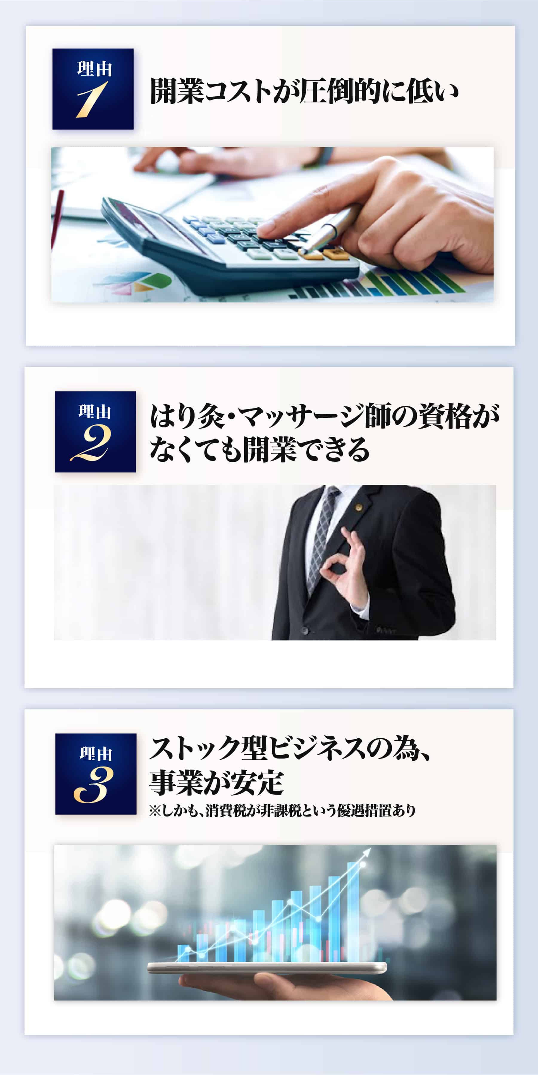 訪問マッサージ・はり灸の治療院経営も同じです。
